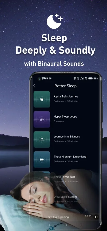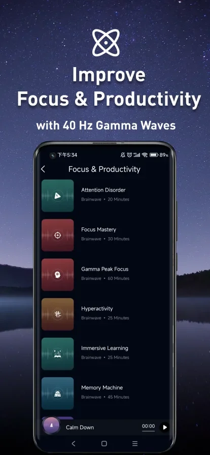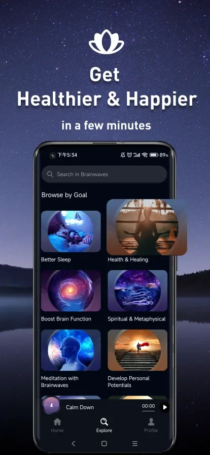 The interface organizes sessions by purpose – whether you need peak performance, deep sleep, or stress relief. Each category uses different frequency ranges, from low Delta waves for recovery to high Gamma frequencies for concentration. The audio quality is notably crisp, though some sessions feel repetitive after extended use.