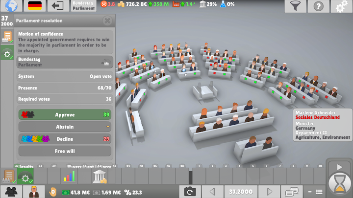 You’ll find yourself managing everything from economic policies to social reforms, with each decision creating ripple effects throughout your virtual society. The political model feels grounded in reality, making every vote and legislative session carry actual weight. However, the interface can feel cramped on smaller screens, especially when navigating through the more detailed policy menus.