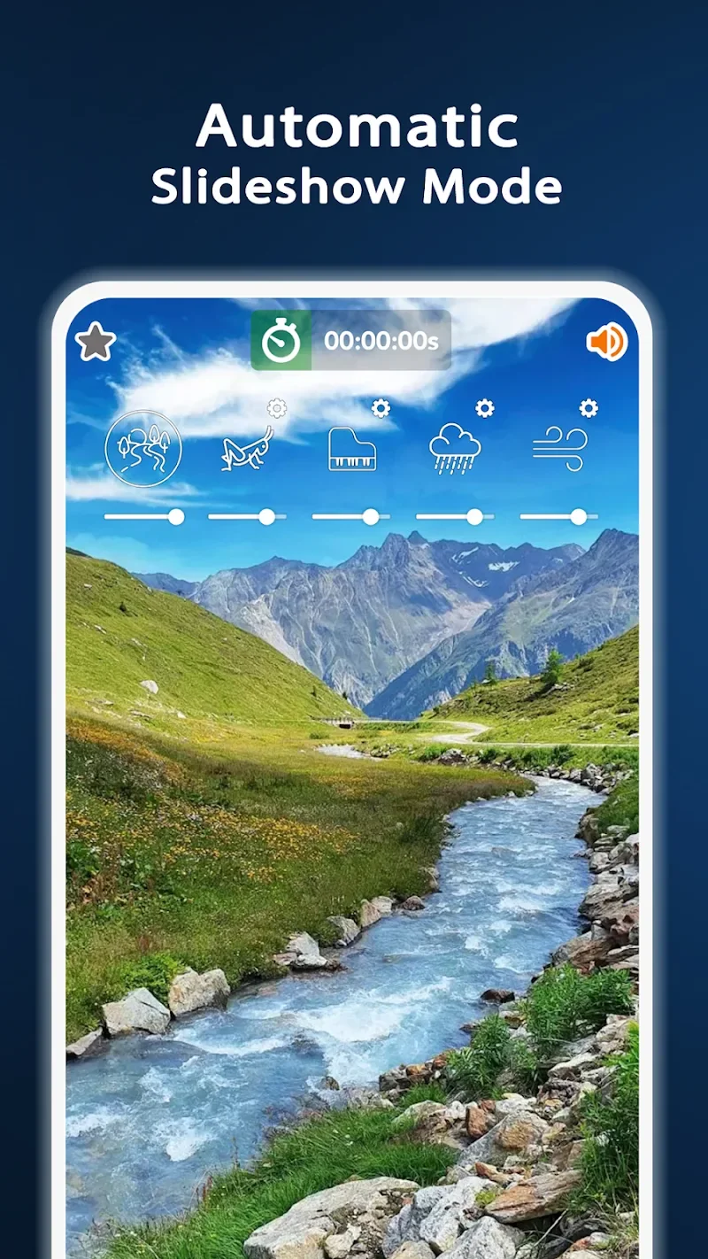 You can set any nature sound as your ringtone and enjoy full-screen HD landscape photos while listening. The volume controls let you fine-tune each sound layer perfectly. With all features unlocked in this enhanced version, you get complete access to every relaxation tool without restrictions.