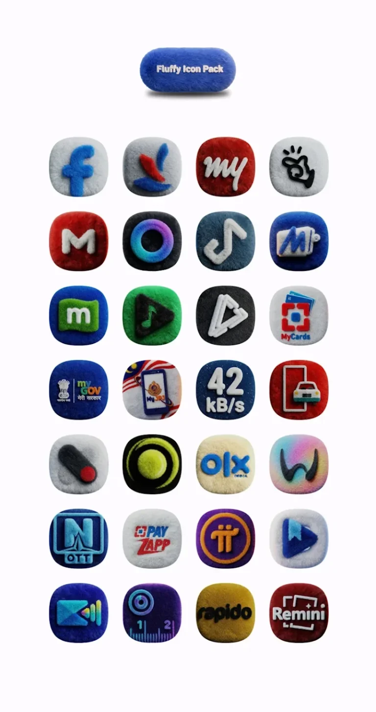 One UI Fluffy Icon Pack transforms your device’s interface with adorable, soft-textured icons that feel surprisingly cozy. The fluffy overlay effect makes every app icon look like a miniature plushie sitting on your home screen. It’s one of those design choices that sounds weird on paper but actually works really well in practice.