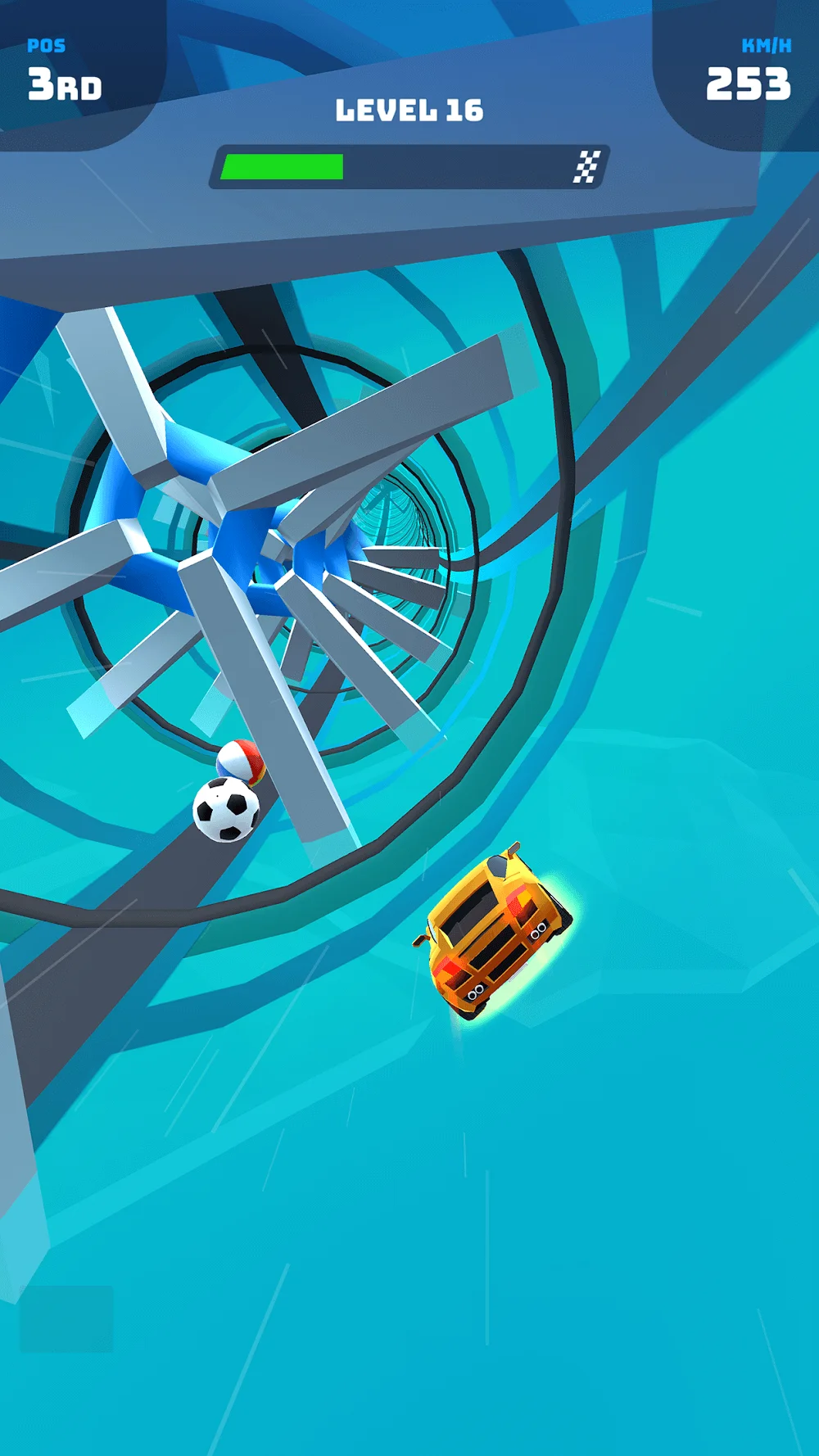 Racing games usually follow predictable formulas, but Race Master 3D breaks that mold with genuinely wild obstacle courses that keep you guessing. This isn’t your typical lap-around-the-track experience – every level throws spinning barriers, giant ramps, and surprise hazards at you while you’re trying to outrace aggressive competitors. The simple one-finger control scheme makes it instantly accessible, though don’t let that fool you into thinking it’s easy.