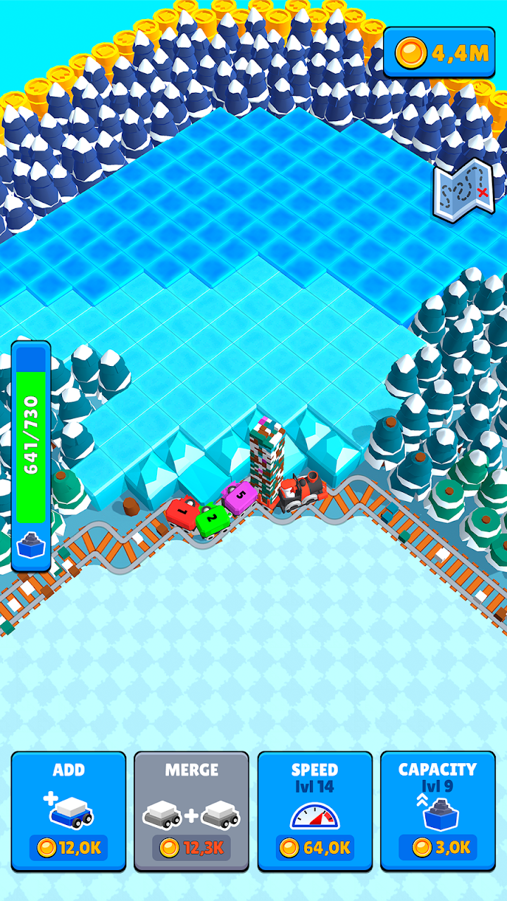 The visual presentation strikes a nice balance between colorful cartoon aesthetics and clear functionality. Your trains chug along their routes automatically, gathering resources while you focus on optimizing routes and investing profits into better equipment. The idle mechanics work well here – you can step away and return to find your mining operation has continued generating income, though the UI can feel a bit cramped when managing multiple train lines simultaneously.